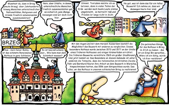 Ein Comic erzählt die Geschichte des Grossen Stockalpers. Ein Comic die Geschichte des Rathauses von Brieg, in dem einst die polnischen Könige residierten.