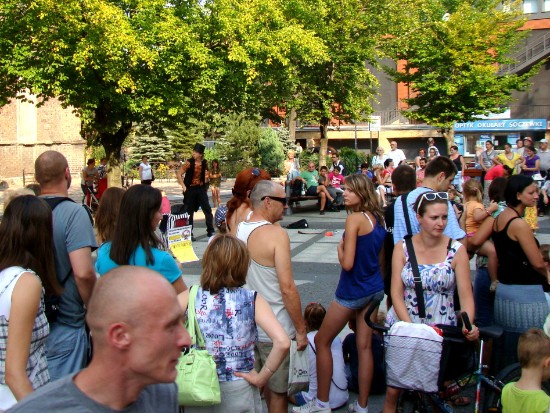 Auf dem Platz vor Kirche unterhält ein rockender Pantomime die einheimische Bevölkerung.