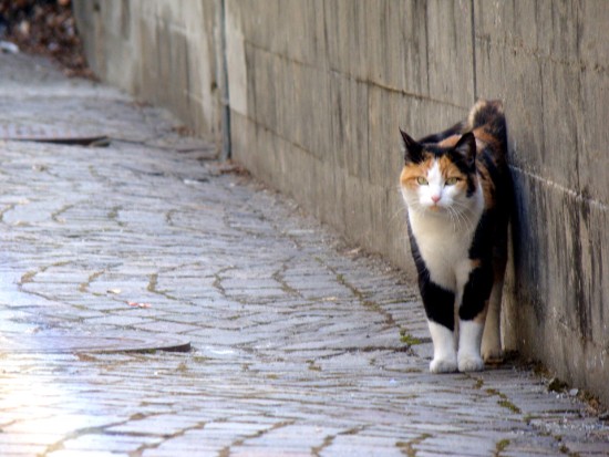 Ein Kater streicht in der Frühlingssonne des Jahres 2011