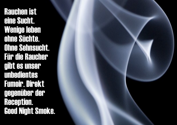 Für jene, die trotzdem weiter rauchen, hat das Hotel Good Night Inn zwei grosszügige Fumoirs eingerichtet. Denn alle, die rauchen, sollen nicht vor der Türe stehen müssen, um eine Zigarette oder Zigarre zu geniessen.