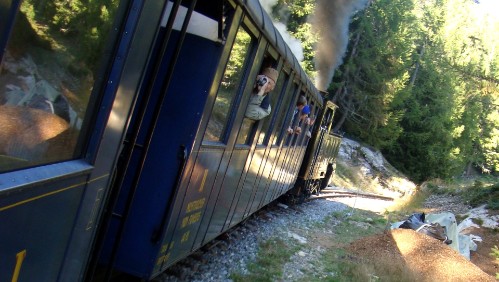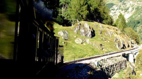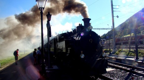 Bei der Einfahrt in den 1'874 Meter langen Scheiteltunnel der Furka-Dampfbahn müssen alle Türen und Fenster gut geschlossen werden. Damit die Atemwege der Passagiere und die Interieurs der wiederinstandgestellten schönen Waggons nicht verrust werden. Der Schweizer Schriftsteller Dürrenmatt schrieb einst die Kurzgeschichte "Der Tunnel". Man sollte sie mitnehmen auf dieser Reise.