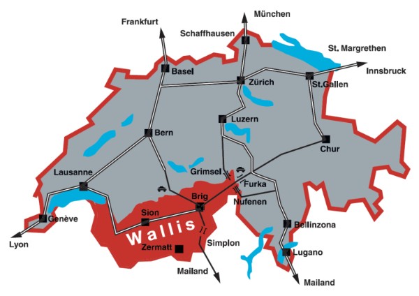 Brig ist ein internationaler Verkehrsknotenpunkt. Und deshalb mit der Bahn, dem Auto und dem Bus leicht erreichbar. Und auch die drei Flughäfen Zürich, Genf und Malpensa sind vor der Haustür.