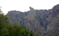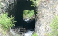 Wenn der Schnee in den Bergen schmilzt, bringt die Saltina viel Wasser. Der Weg führt an diesen Wasserfällen vorbei. | | Im Kampf gegen das Hochwasser schlugen die Gliser das dunkle Ruli-Puli-Loch in den morschen Schiefer.
