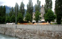 | Moderne Architektur? Wohnbauten der nächsten Generation? Nein ein Taubenschlag am Wegrand. | | Italiener in Brig: Sie wurden hier heimisch. Ohne die Heimat zu vergessen. Wer Lust hat, kann mitspielen. | | Gegenüber der Boccia Bahn liegt der Camping. 500 Meter vom Hotel entfert. Ebenfalls direkt an der Saltina. |