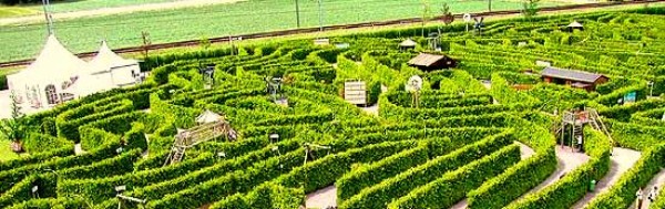 Heute bilden die Thujen ein phantastisches Labyrinth. In diesem Abenteuerpark suchen Gross und Klein nach Ausgängen und Schatztruhen.