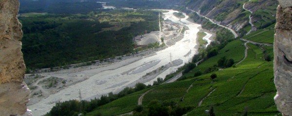 Und im Westen auf den grössten Urwald der Schweiz, den Pfynwald mit der hier noch weitgehend frei fliessenden Rhone.