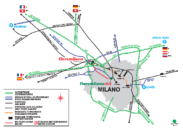 In Mailand finden immer wieder internationale Messen statt. Dies an zwei Standorten. Diese Karte erleichtert die Orientierung.
