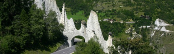 Wer mit dem Auto oder der Post Richtung Grand-Dixence kurvt, fährt in einem Tunnel durch die einmaligen Pyramiden von Euseigne hindurch.