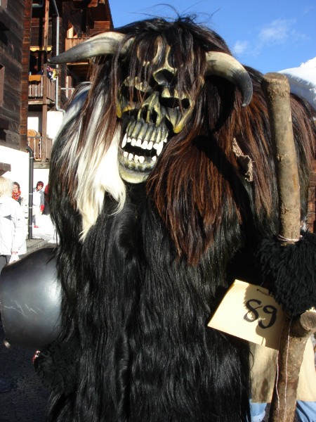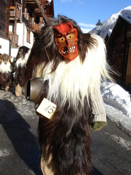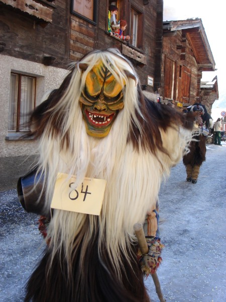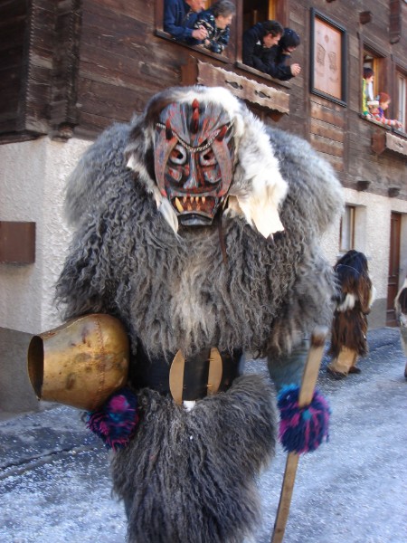 Die jungen Männer des Lötschentales verkleiden sich während der Fasnacht in Holzmasken, Schaf- und Ziegenfellen und rumoren ganze Nächte lang durch die Dörfer des Tales.