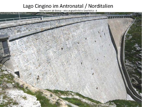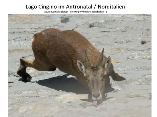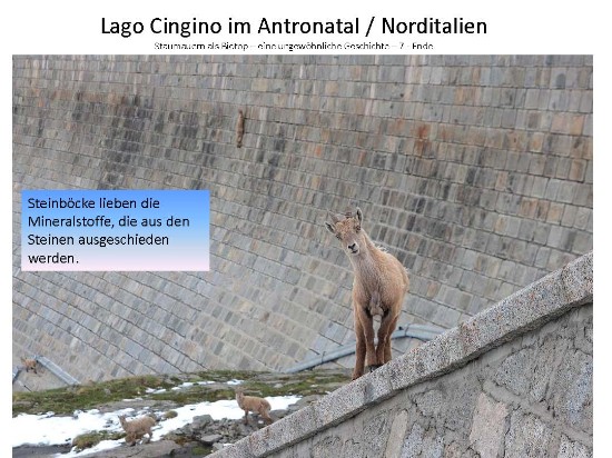 Die kundige Jägerin und der einsame Naturfreund merken es unschwer: In der Steilwand der Staumauer sind nur junges Steinwild und gestandene Steingeissen unterwegs. Das männliche Steinwild - die imposanten Steinböcke - meiden die Steilwand wie der Teufel das Weihwasser. Die Herren der Schöpfung haben Angst. Wie im wirklichen Leben.