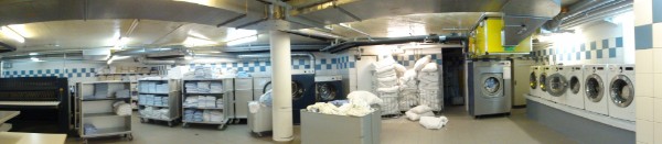 Wir arbeiteten bisher in unserer hauseigenen Waschküche mit zwei Miele 32-Kilo-Waschmaschinen. Eine war 12 Jahre alt. Die andere nahmen wir erst vor knapp fünf Jahren in Betrieb.