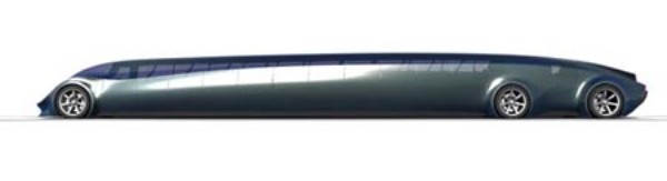 Ihr "Superbus" ist 15 Meter lang. 2.5 Meter breit. Aber nur 1.6 Meter hoch. Der Luftwiderstand besser als bei jedem Auto. Gesamtgewicht der Kiste nur 9'500 Kilo.